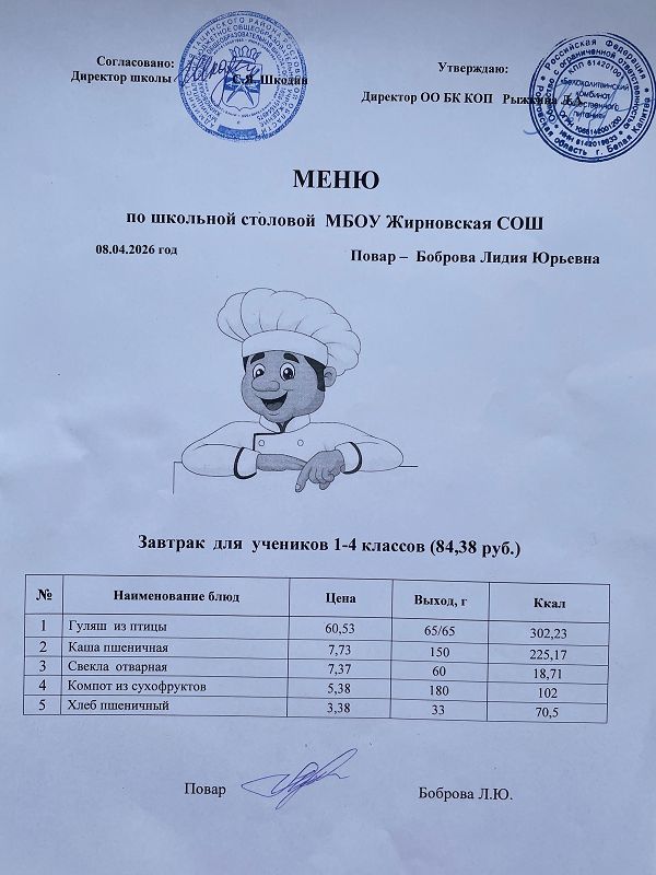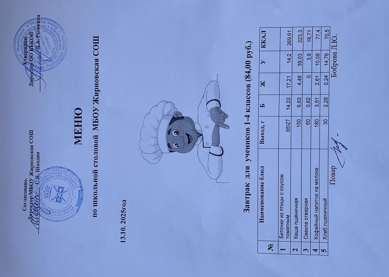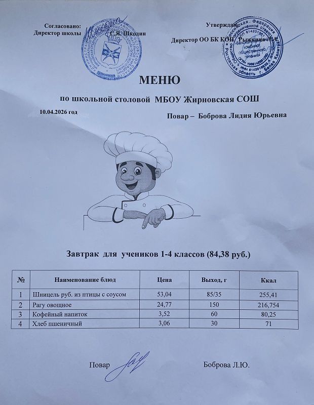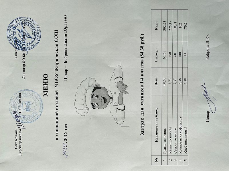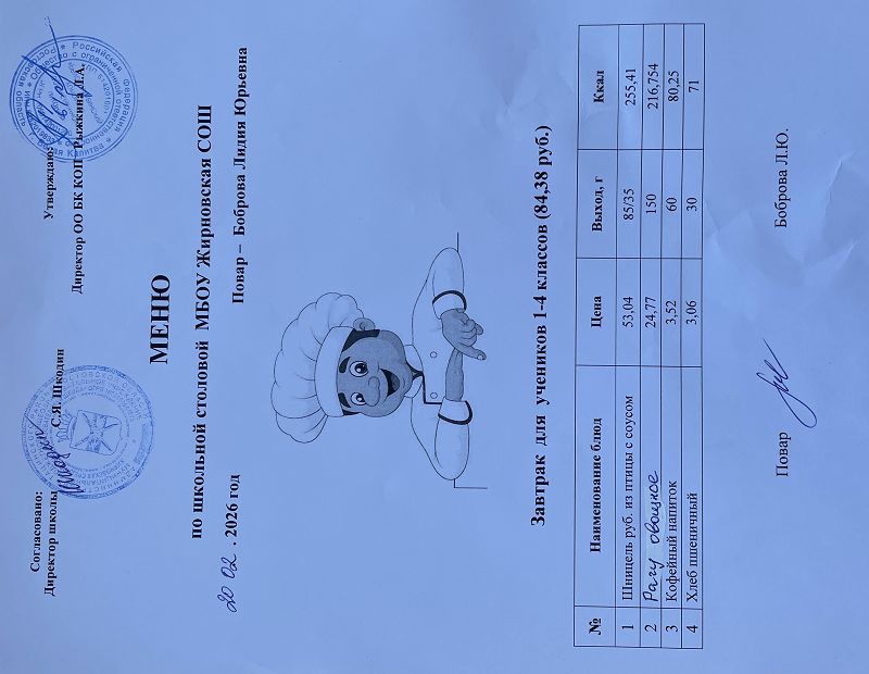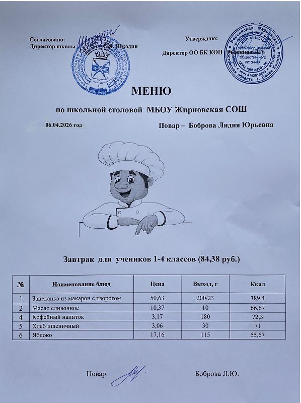 Примерное меню. Завтрак для учащихся 1-4 классов на 2024 учебный год на сумму 84 рубля (ods, 24 Кб)