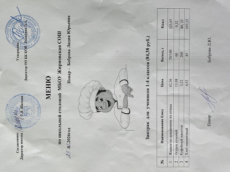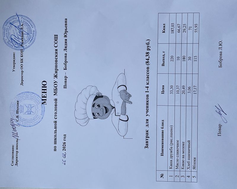 Примерное меню. Завтрак для учащихся 1-4 классов на 2024 учебный год на сумму 84 рубля (ods, 24 Кб)