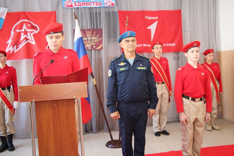 29 октября в Жирновской школе проведена торжественная церемония посвящения в юнармейцы, приуроченная к празднованию Дня народного единства, 80-летию Победы в Великой Отечественной войне.