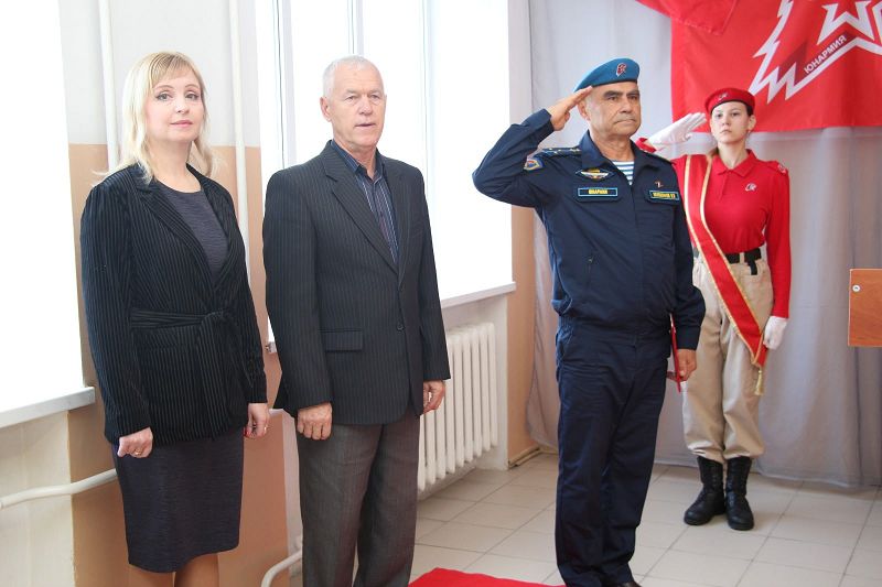 Поздравил юнармейцев директор школы Сергей Яковлевич Шкодин.