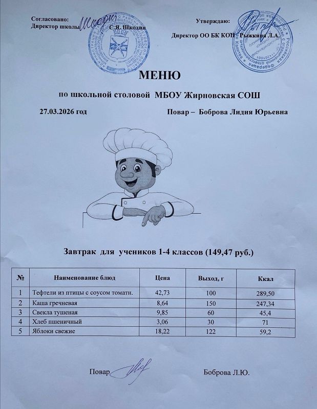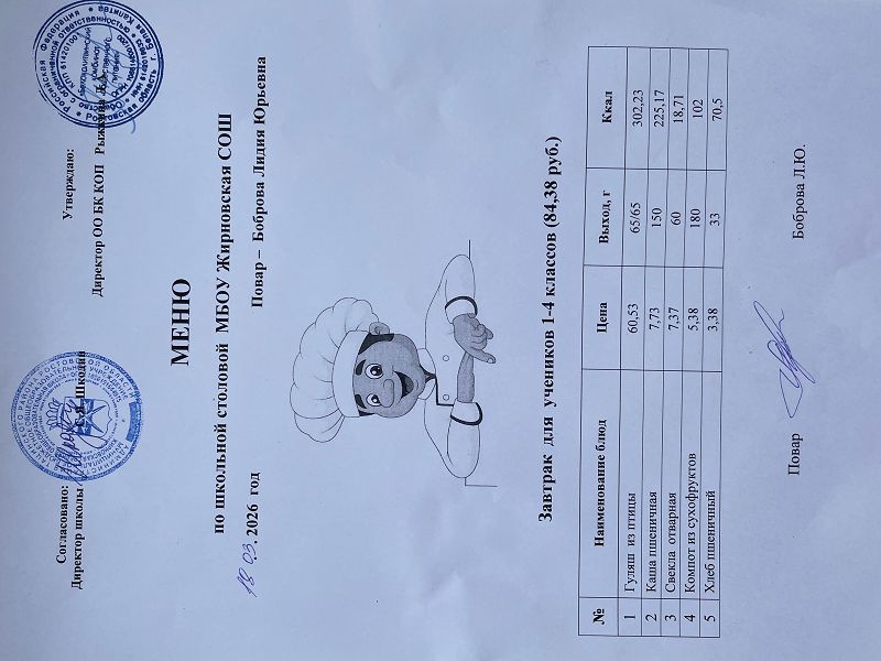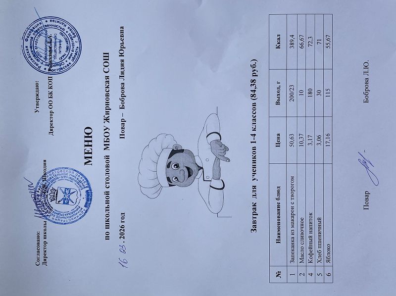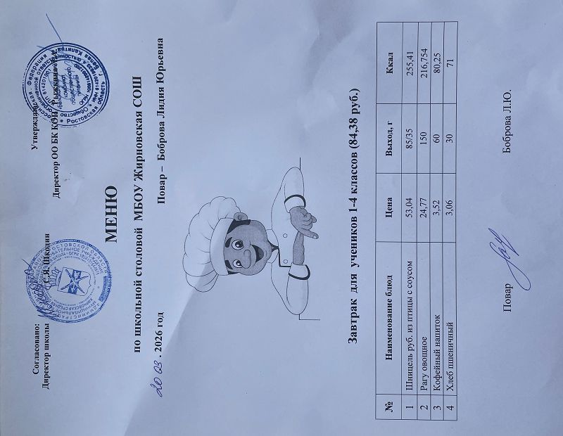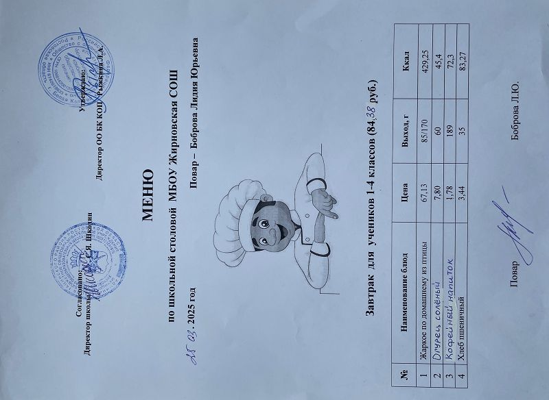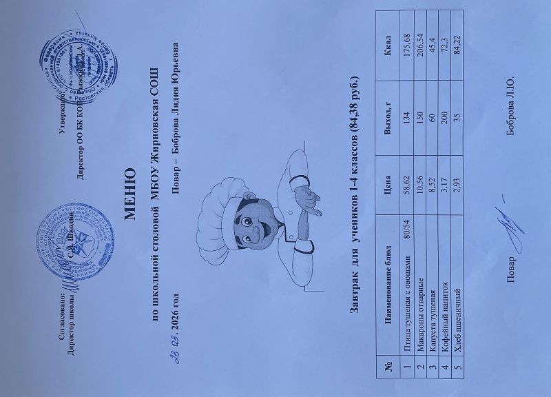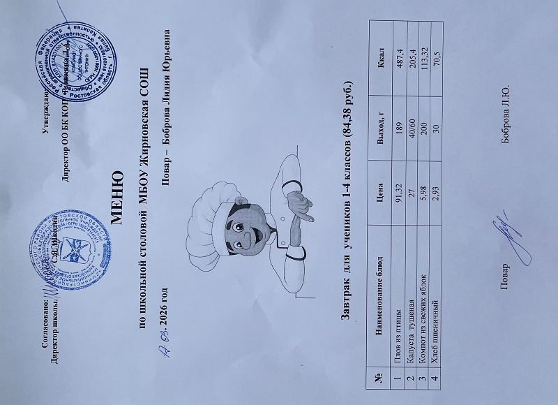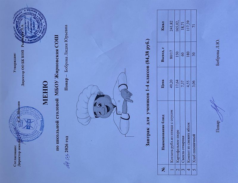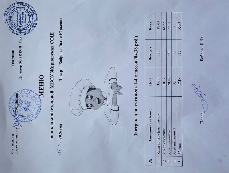 Скачать этот файл (Meniu_6050_Rub_Zhirnovskaia_SOSh.PDF)Примерное меню. Обед для детей с ОВЗ 1-4 классов на 2022г на сумму 60.50 руб (pdf, 861.8 Кб)