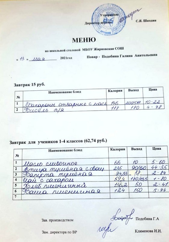 Меню. Завтрак для 1-4 классов на 75,65 руб с 03.04.2023 г. (pdf, 952.4 Кб)