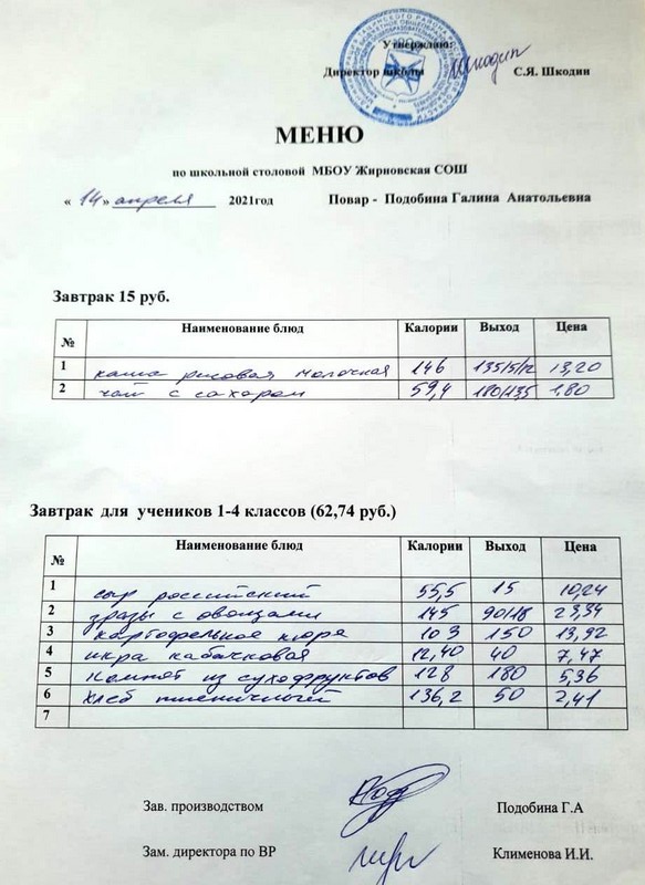 Меню. Завтрак для 1-4 классов на 75,65 руб с 03.04.2023 г. (pdf, 952.4 Кб)