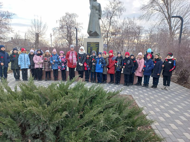 09.12.2022 г. в День Героев Отечества ученики четвёртых классов МБОУ Жирновской СОШ возложили цветы к памятному знаку погибшим землякам при исполнении служебного долга за пределами Отечества и к памятнику войнам, погибшим в годы Великой Отечественной войны 1941-1945г., освобождая поселок Жирнов от немецко-фашистских захватчиков в январе 1943 года.