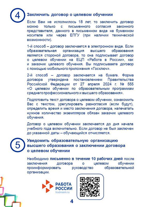 Памятка об организации целевого обучения для абитуриента, поступающего на обучение по образовательным программам высшего образования в рамках приемной кампании в 2024/25 учебном году.