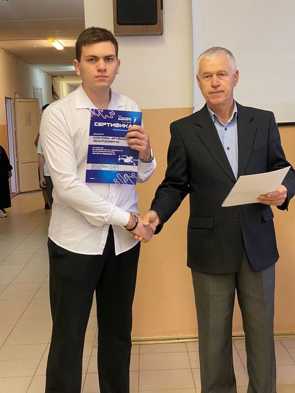Директор школы Сергей Яковлевич Шкодин вручил грамоты ученикам за победу в муниципальных и региональных конкурсах.